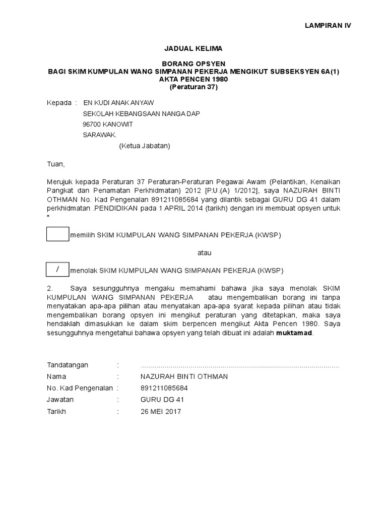 Lampiran V Jadual Kelima Borang Opsyen Bagi Skim Lampiran V Jadual Kelima Borang Opsyen Bagi Skim