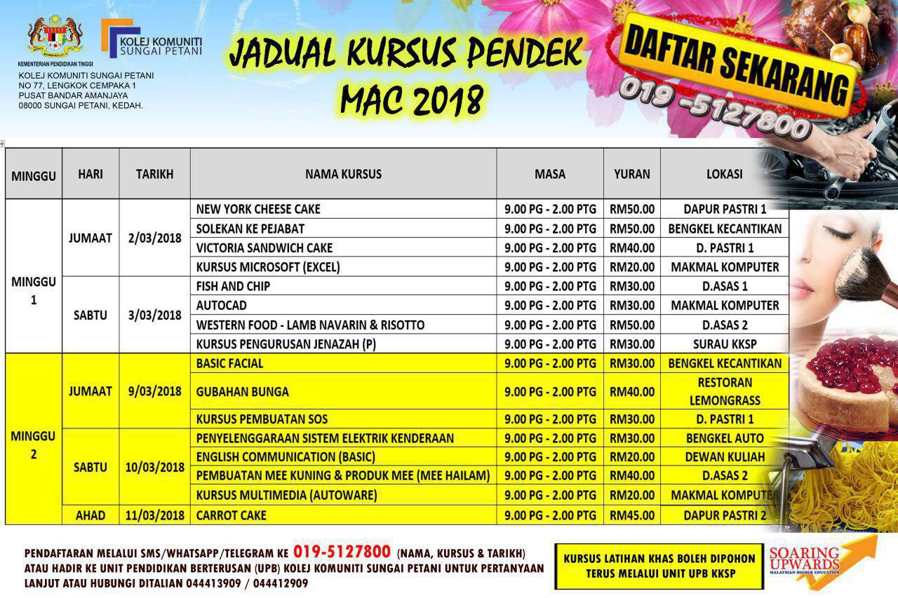 Jadual Kursus Pendek Mac 2018 Kolej Komuniti Bandar Darulaman Kkbda Facebook