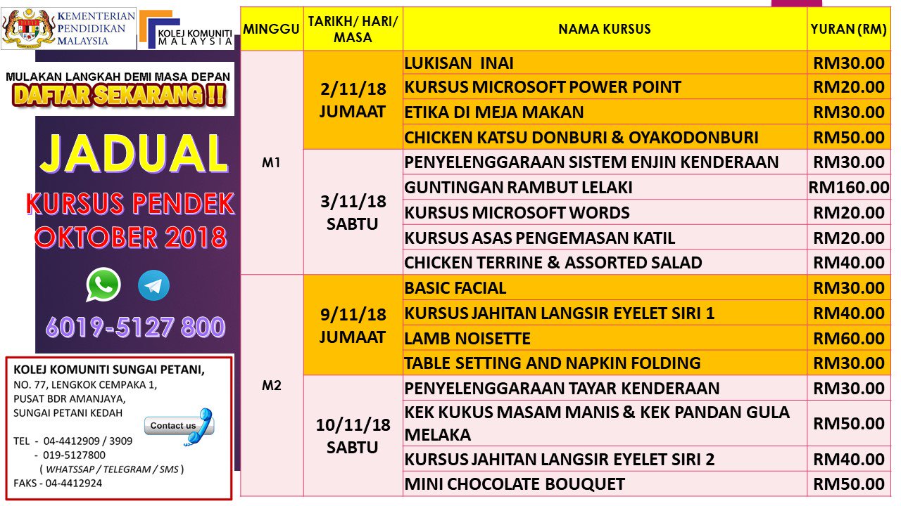 Jadual Kursus Pendek Bagi Bulan Oktober Kolej Komuniti Bandar Darulaman Kkbda Facebook