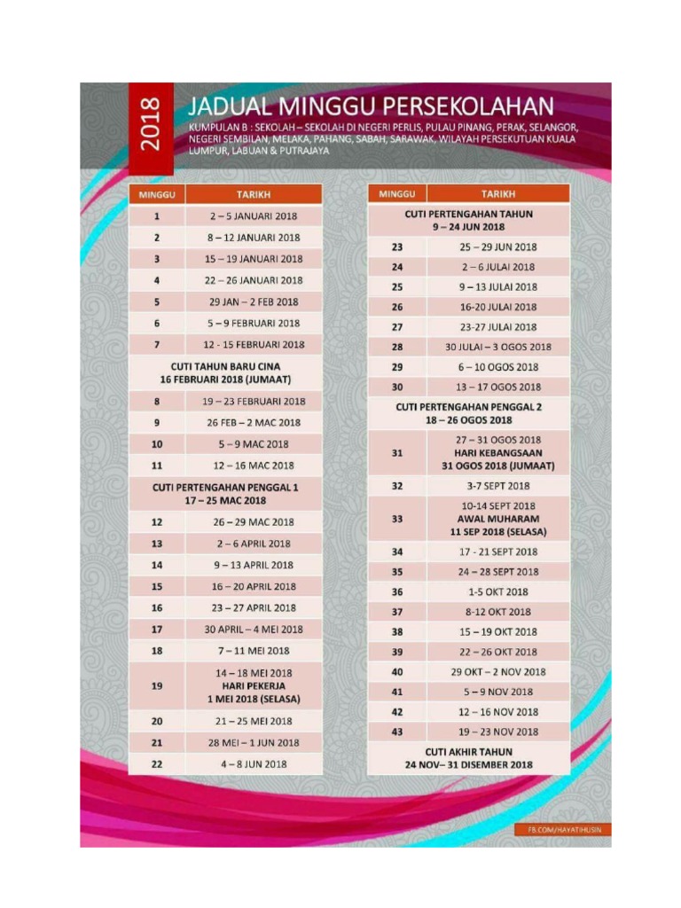 Pendidik2u Jadual Minggu Persekolahan 2018 Credit To Facebook