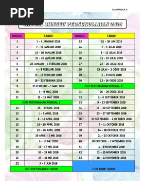 Jadual Minggu Persekolahan 2018 Kumpulan A Dan B Ceritamak