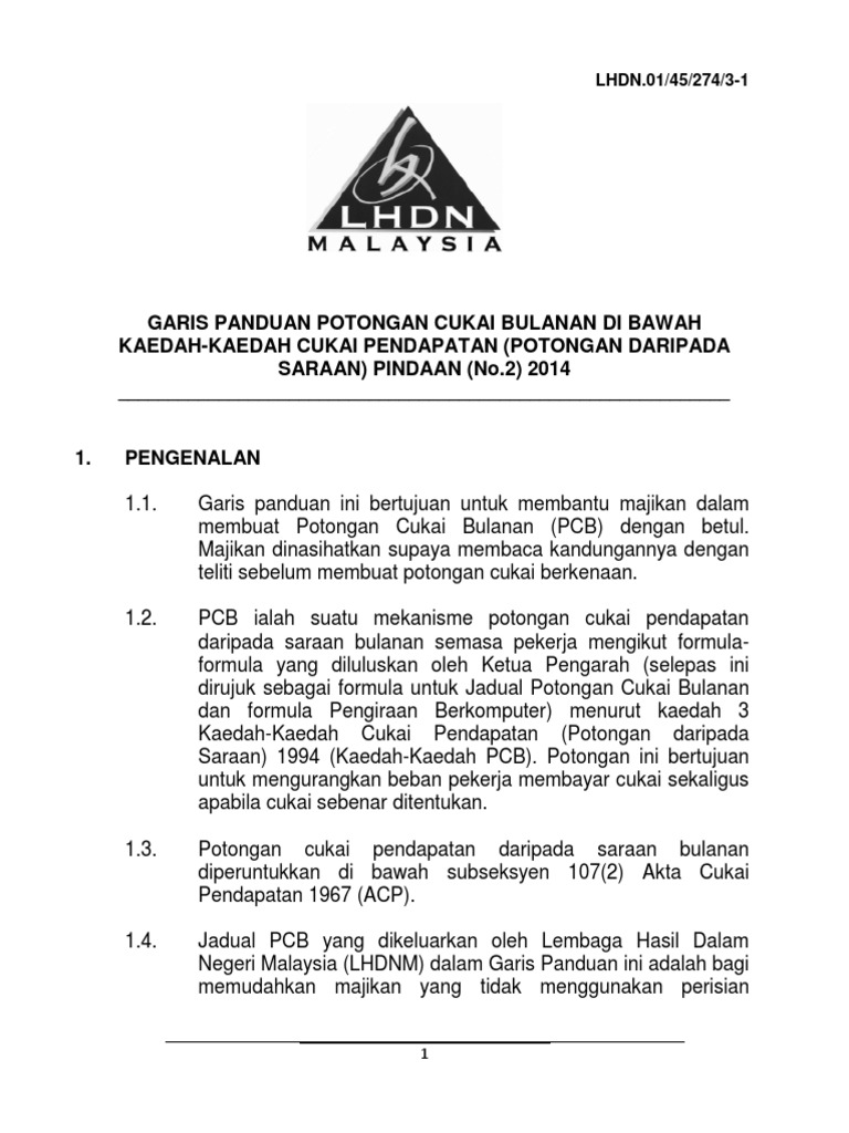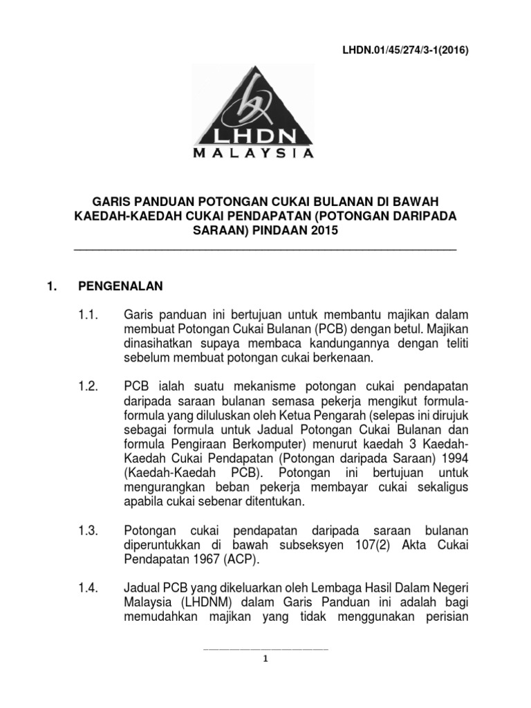 Garis Panduan Potongan Cukai Bulanan Di Bawah Pembayaran Gaji Berkomputer Dalam Menentukan Pcb Bagi Pdf Document