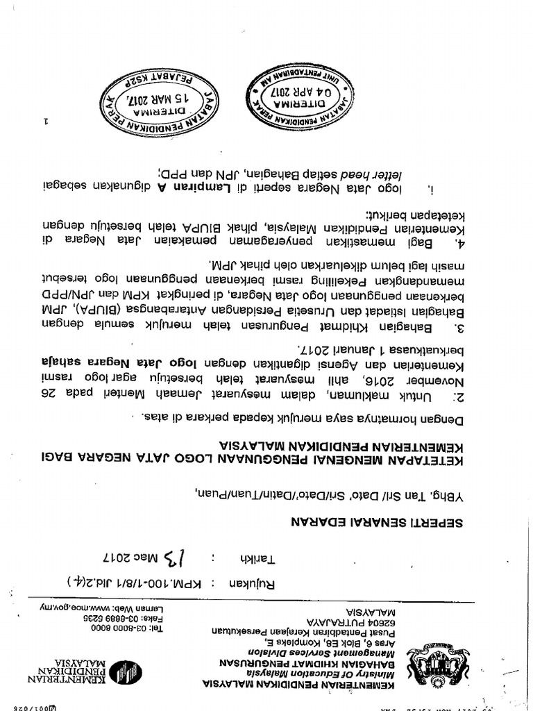 Ketetapan Mengenai Penggunaan Logo Jata Negara Bagi Kementerian Pendidikan Malaysia 2017 1489370039023 Pdf