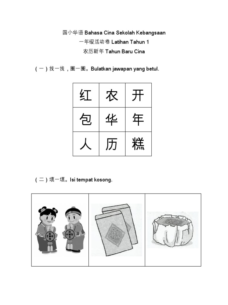 Lembaran Kerja Bahasa Cina Tahun 1