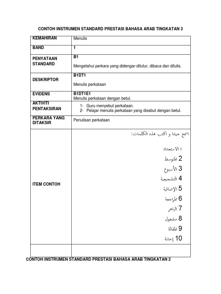 Contoh Instrumen Standard Prestasi Bahasa Arab Tingkatan 3 Menulis 1