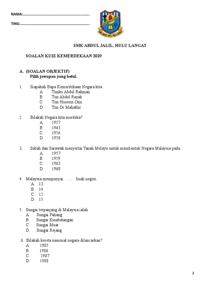 Contoh Soalan Kuiz Hari Kemerdekaan Kecemasan K