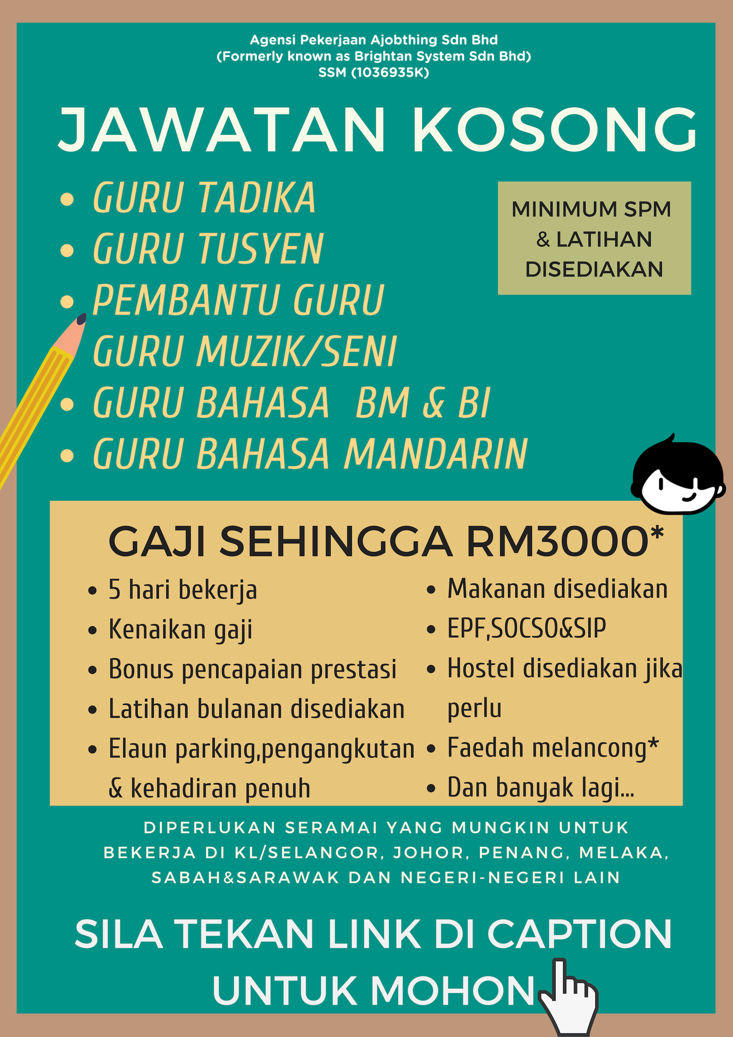 Maukerja On Twitter Jawatan Kosong Guru 2018 Min Spm Latihan Disediakan Gaji Sehingga Rm3000 Pengambilan Untuk Negeri Kl Selangor Johor Penang Melaka Sabah Sarawak Dan Negeri Negeri Lain Admin Drop Link Kerja Di Reply Https T Co Tkr0llfmj1