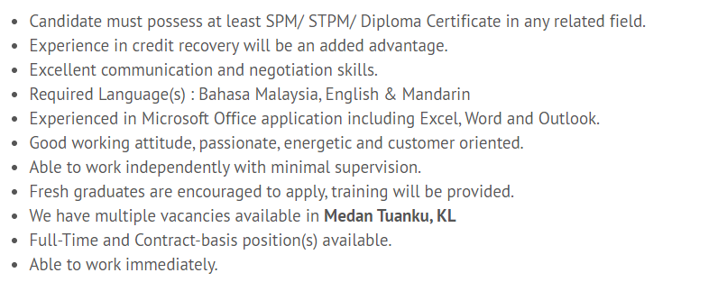 Sera On Twitter Jcl Credit Leasing Sdn Bhd Minimum Spm Stpm Diploma Full Time And Contract Positions Available Rm2k Rm4k Collection Executive Https T Co Yxsi5d6n1i Credit Sales Executive Https T Co Qzdvwhjl0w Credit Analyst Executive
