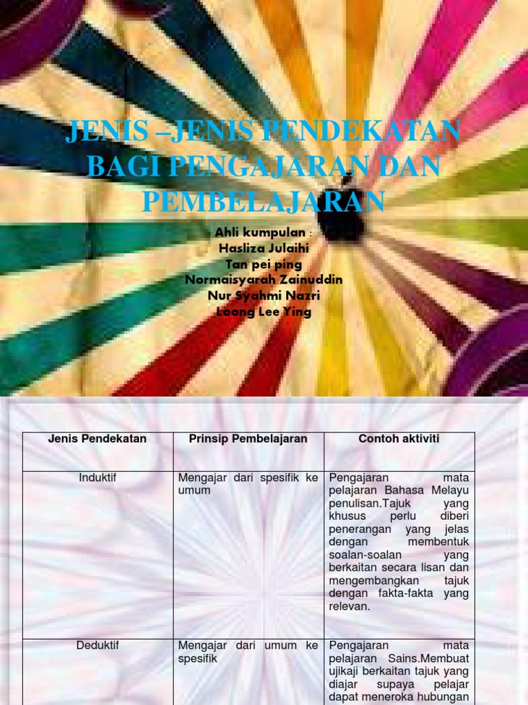 Jenis Jenis Pendekatan Bagi Pengajaran Dan Pembelajaran