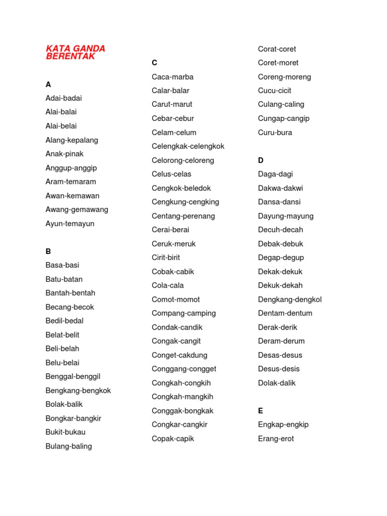Contoh Kata Ganda Berentak Materi Pelajaran 1
