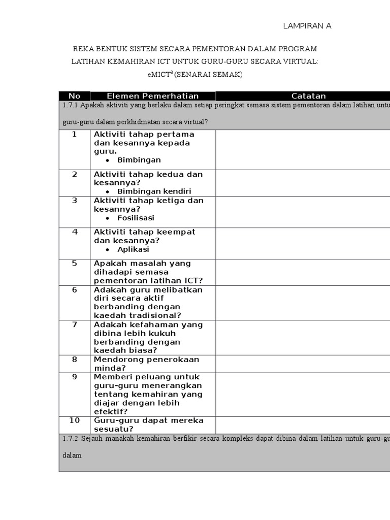 Senarai Semak Reka Bentuk Sistem Secara Pementoran Dalam Program Latihan Kemahiran Ict Untuk Guru