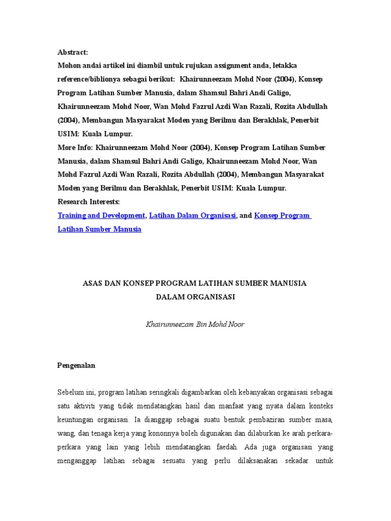 Doc Latihan Dan Pembangunan Sumber Manusia Siti Hajanah Hashim Academia Edu
