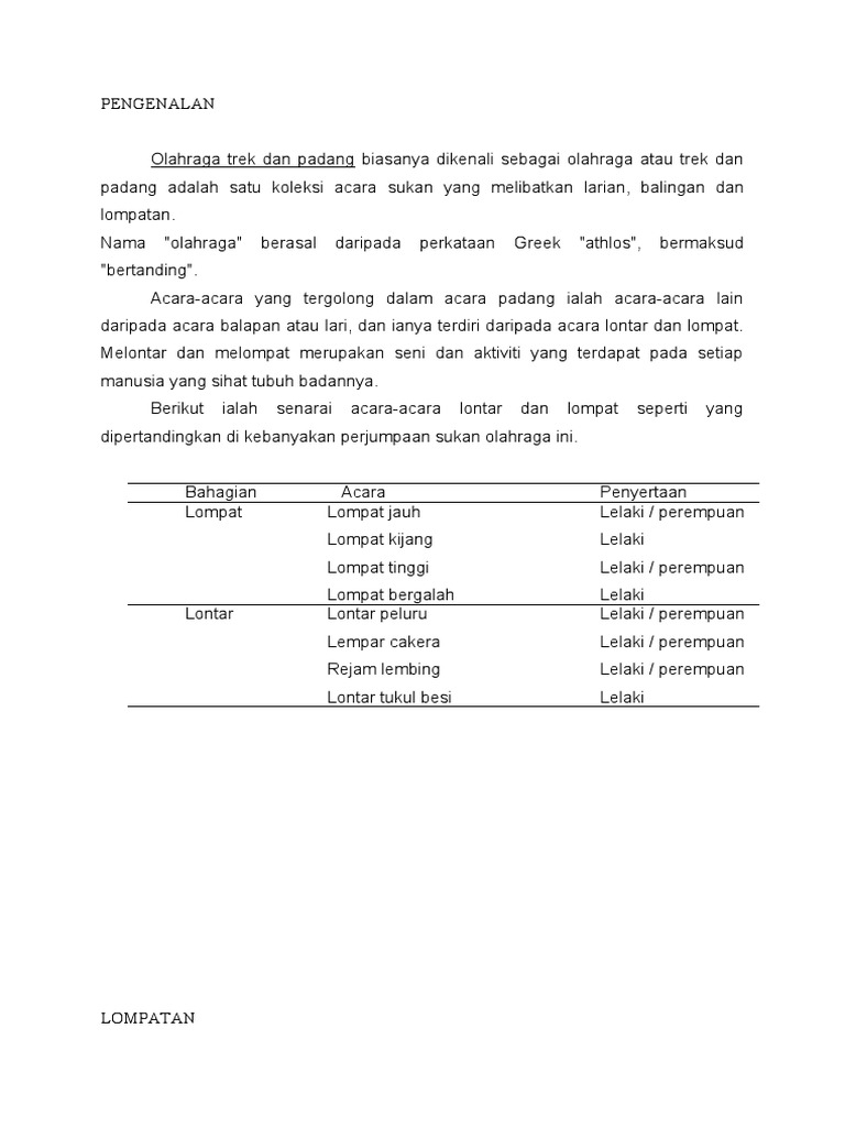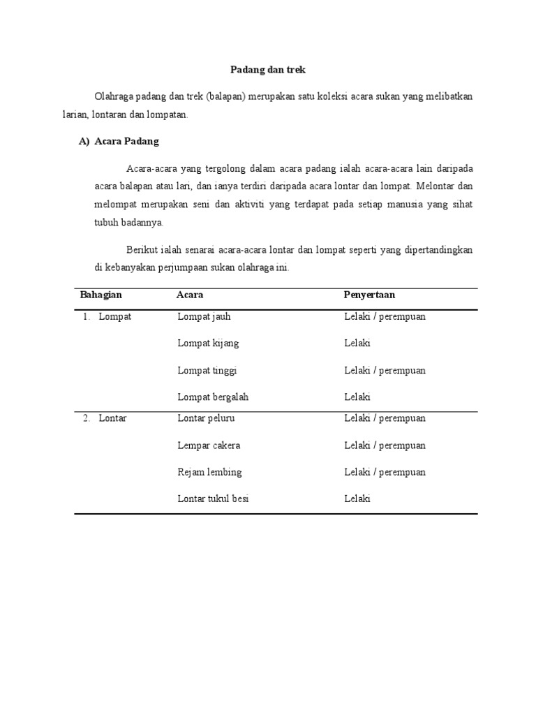 Jenis Jenis Sukan Olahraga Acara Padang
