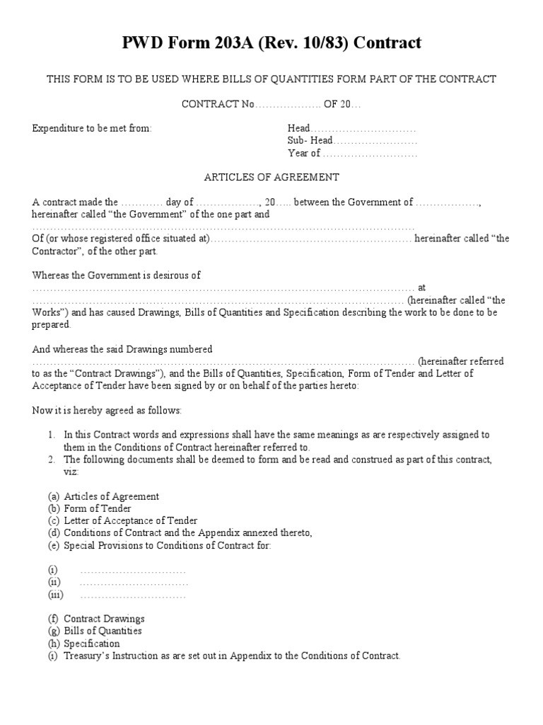 Jkr Pwd Form 203a With Bills Of Quantities Indemnity Insurance