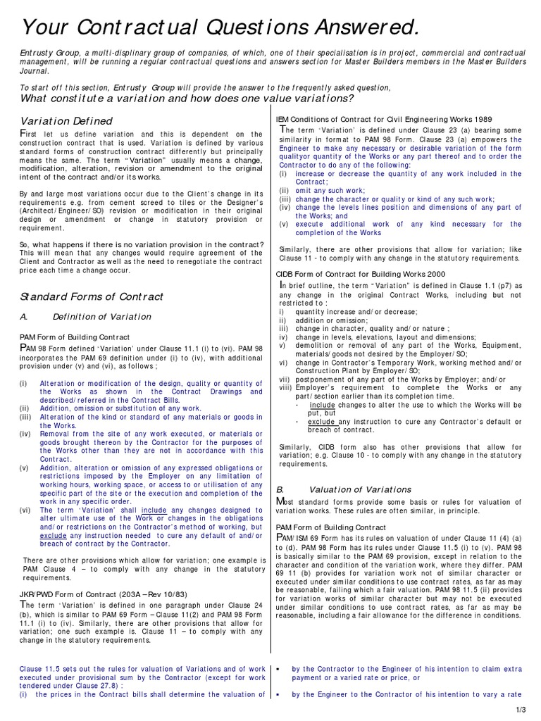 Your Contractual Questions Answered What Constitute A Variation And How Does One Value Variations Variation Defined Employment Architect