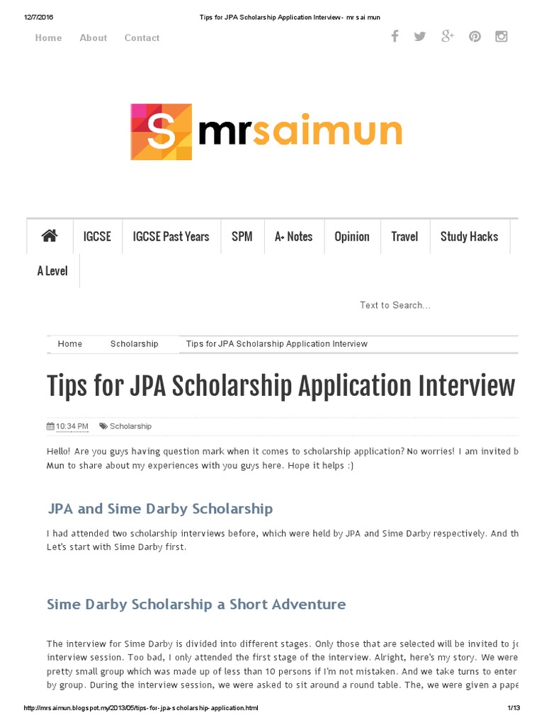 Tips For Jpa Scholarship Application Interview Mr Sai Mun