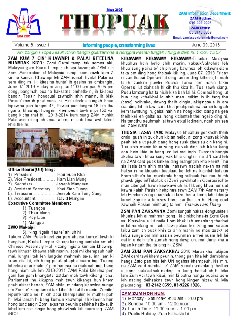 Thupuak Volume 8 Issue 1 June 09 2013