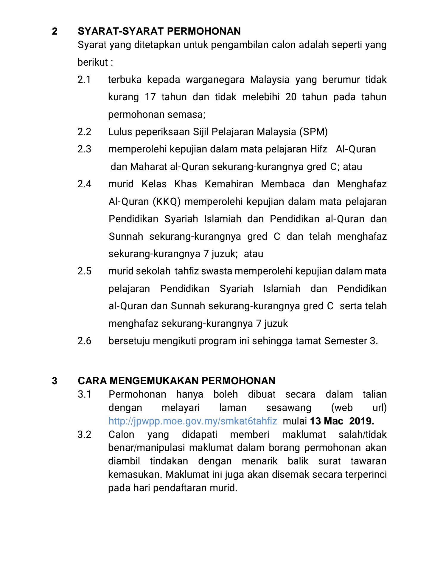 Permohonan Online Bagi Kemasukan Tingkatan 6 Tahfiz Bagi Tahun 2019 Mypendidikanmalaysia Com