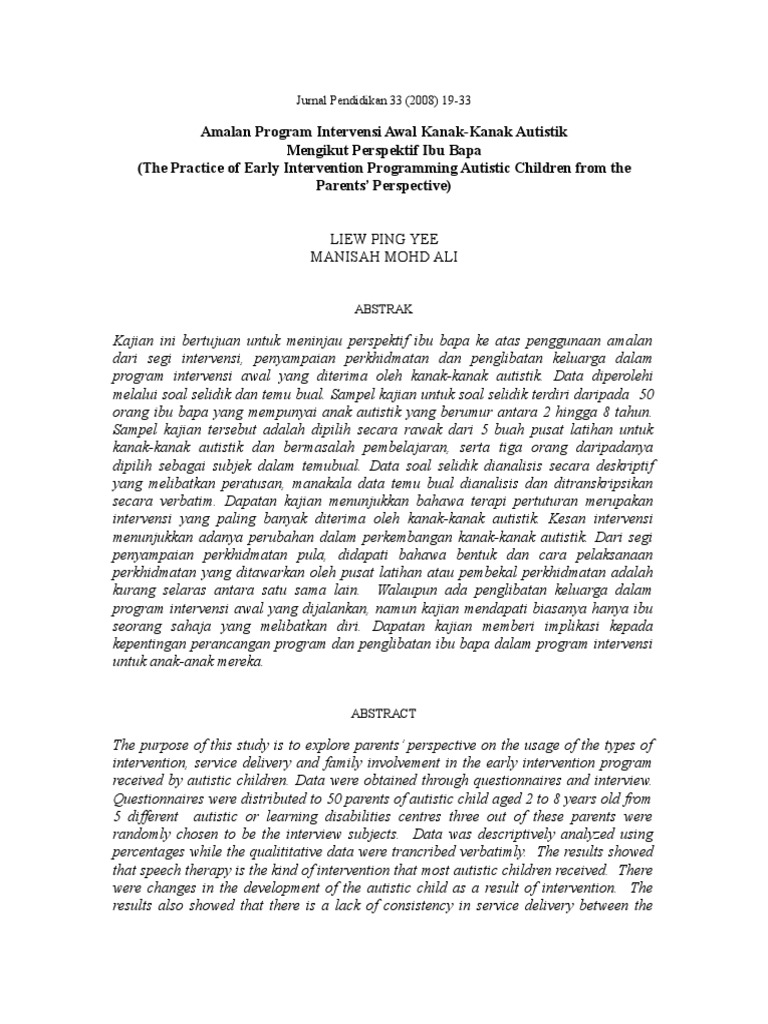 Pdf 2008 Amalan Program Intervensi Awal Kanak Kanak Autistik Ayieh Safi Academia Edu