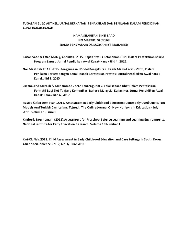 Tugasan 10 Artikel Jurnal Pentaksiran Dan Penilaian