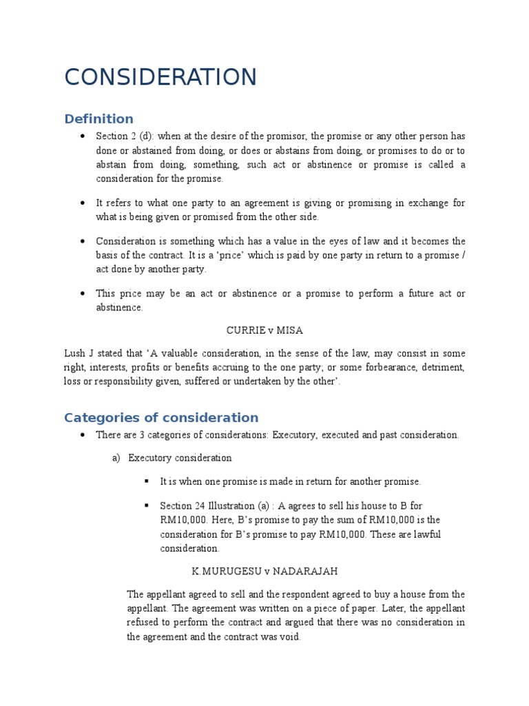 Categories Of Consideration Case Contract Law Common Law