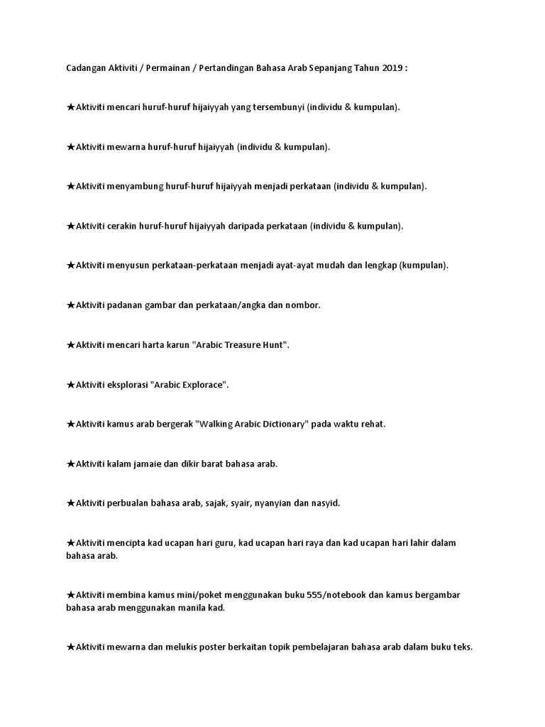 Cadangan Aktiviti Pdpc Bahasa Arab