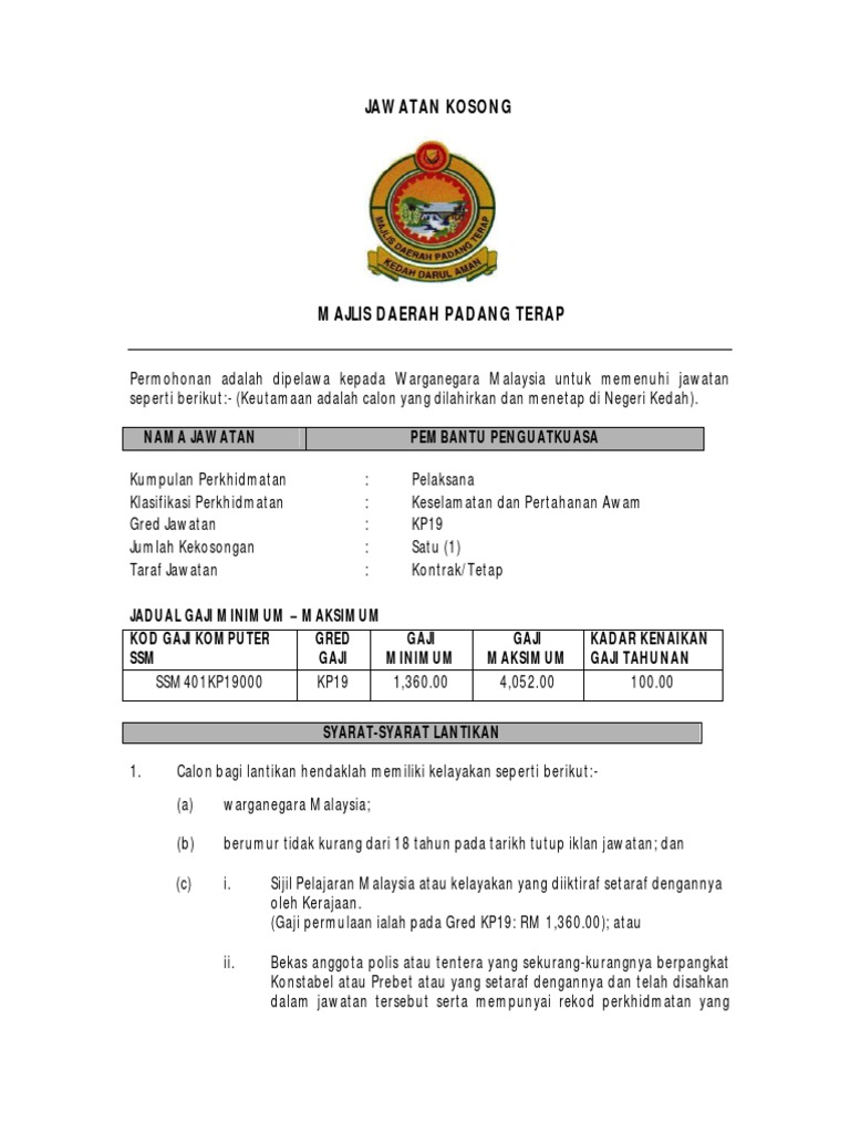 Jawatan Kosong Nama Jawatan Pembantu Penguatkuasa