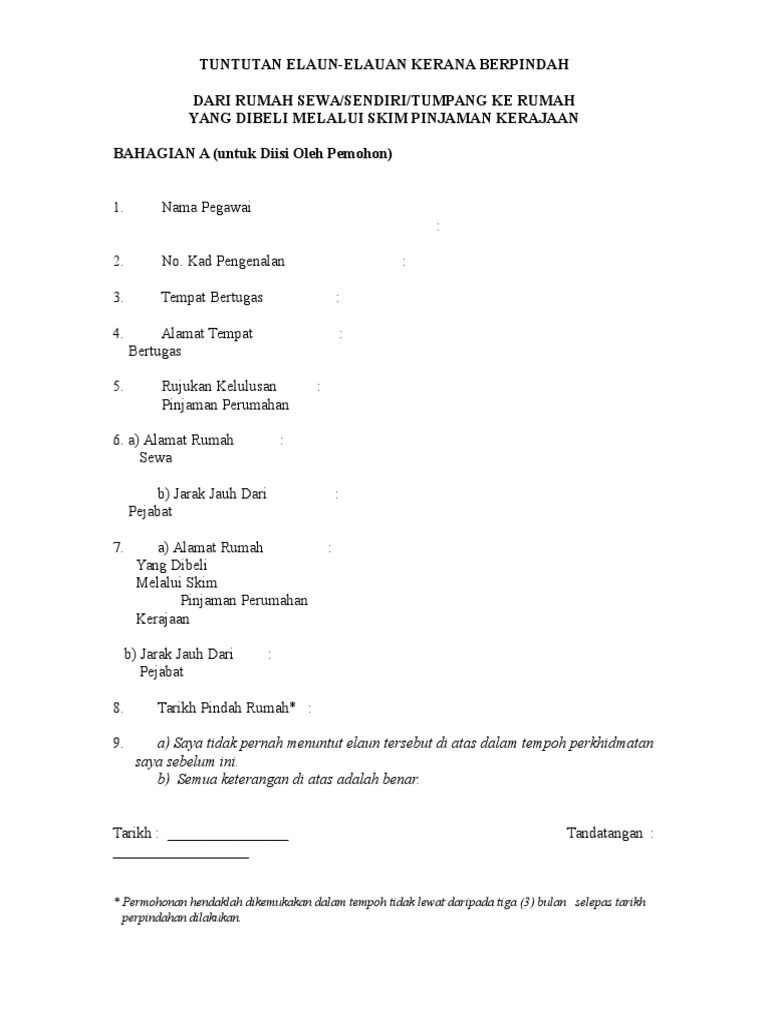 Contoh Tntutan Elaun Pindah Rumah Doc