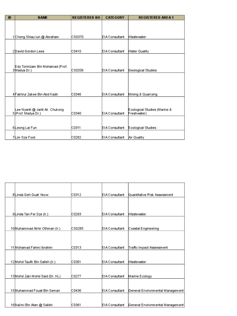 Senarai Perunding Eia Berdaftar Mei 2018 Done Excel Done Cc Xlsx Environmental Impact Assessment Environmental Science