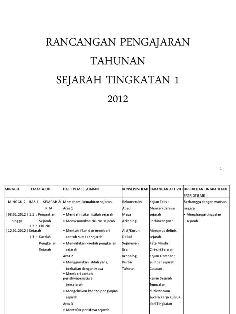Rancangan Pengajaran Tahunan Sejarah Tingkatan 1