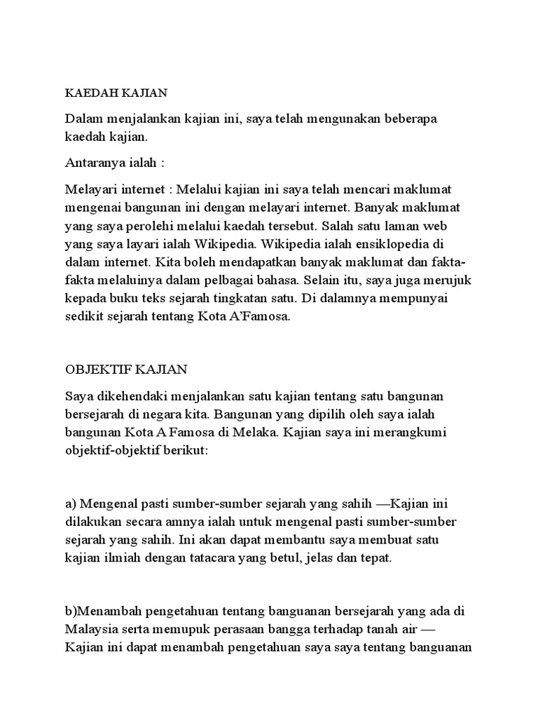 Format Dan Contoh Laporan Kajian Kes Sejarah Kssr Sumber Pendidikan