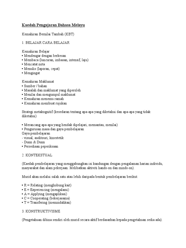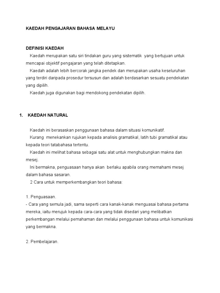 Nota Kuliah Pendekatan Kaedah Dan Teknik Pengajaran Bahasa Pdf Strategi Pendekatan Kaedah Dan Teknik Mengajar Bahasa Melayu Muhammad Zuhair Zainal Course Hero