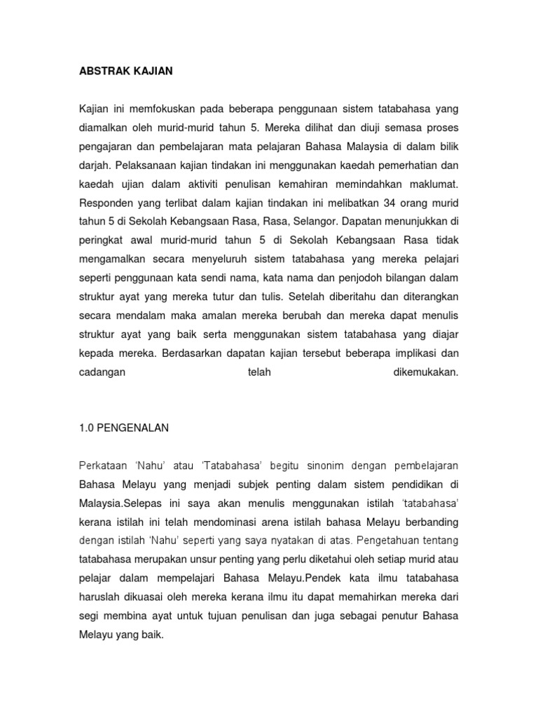 Contoh Kajian Tindakan Bahasa Melayu Imbuhan Doc Documents