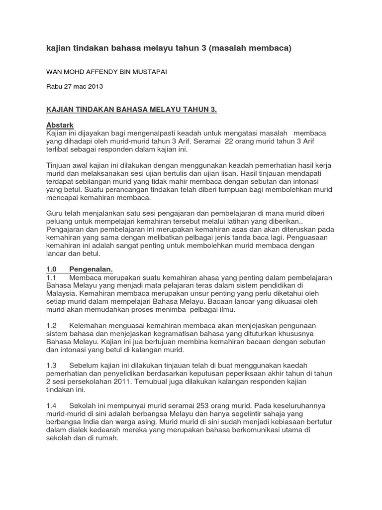 Kajian Tindakan Bahasa Melayu Tahun 3 Pdf Document