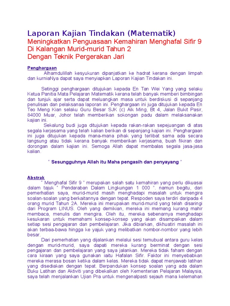 Kajian Tindakan Sifir Pdf Document