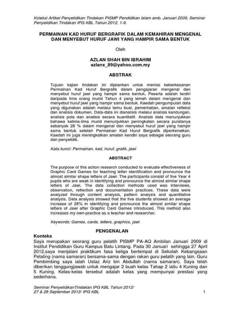 Pdf Penggunaan Kad Warna Jawiku Dalam Meningkatkan Kemahiran Menyambung Huruf Jawi