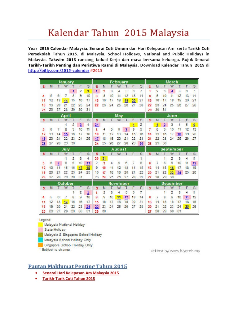 Kalender Cuti Umum 2015 Dan Takwim Sekolah Malaysia Pdf Document