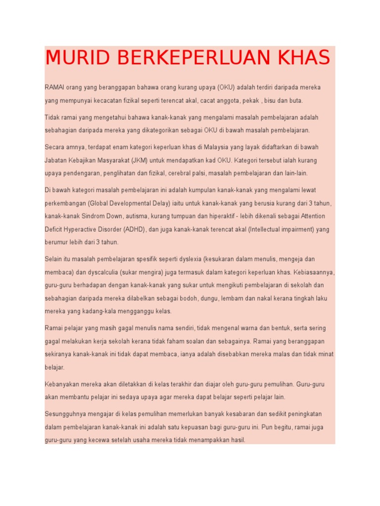Pdf Tajuk 10 Kanak Kanak Berkeperluan Khas Rohana Rohana Academia Edu