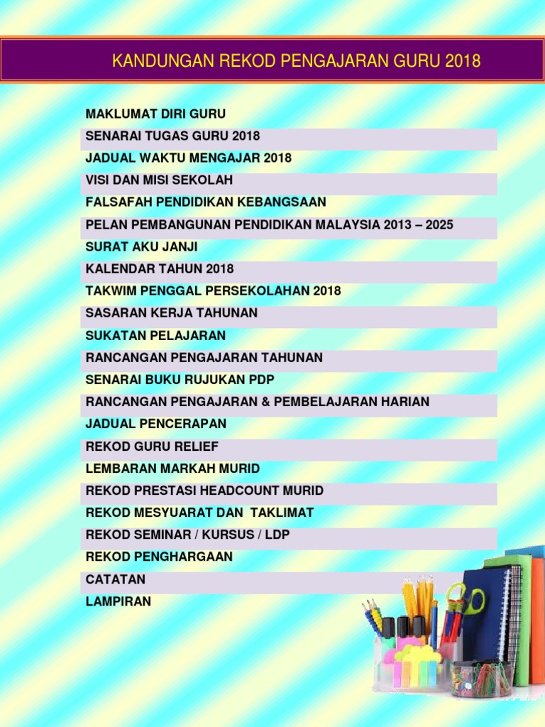 Rekod Persediaan Mengajar 2018 Designed By Elrine Johini