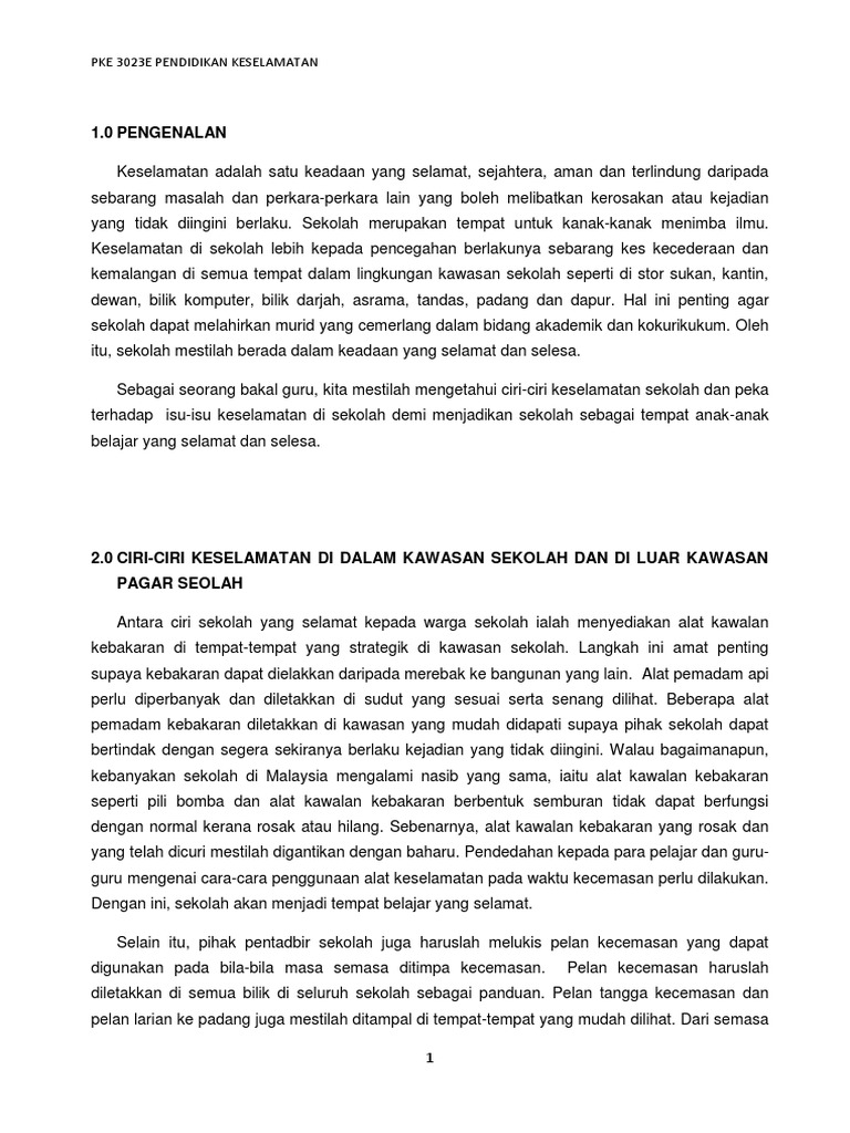 Esei Ciri Ciri Keselamatan Di Sekolah