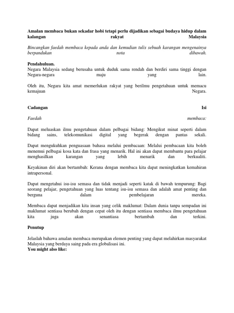 Contoh Karangan Faedah Membaca موضوع Nota Bahasa Arab Facebook