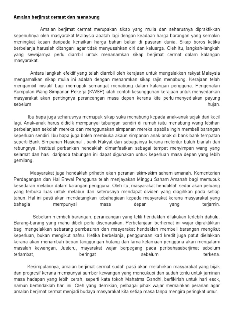 Berjimat Cermat Amalan Mulia Karangan Spm