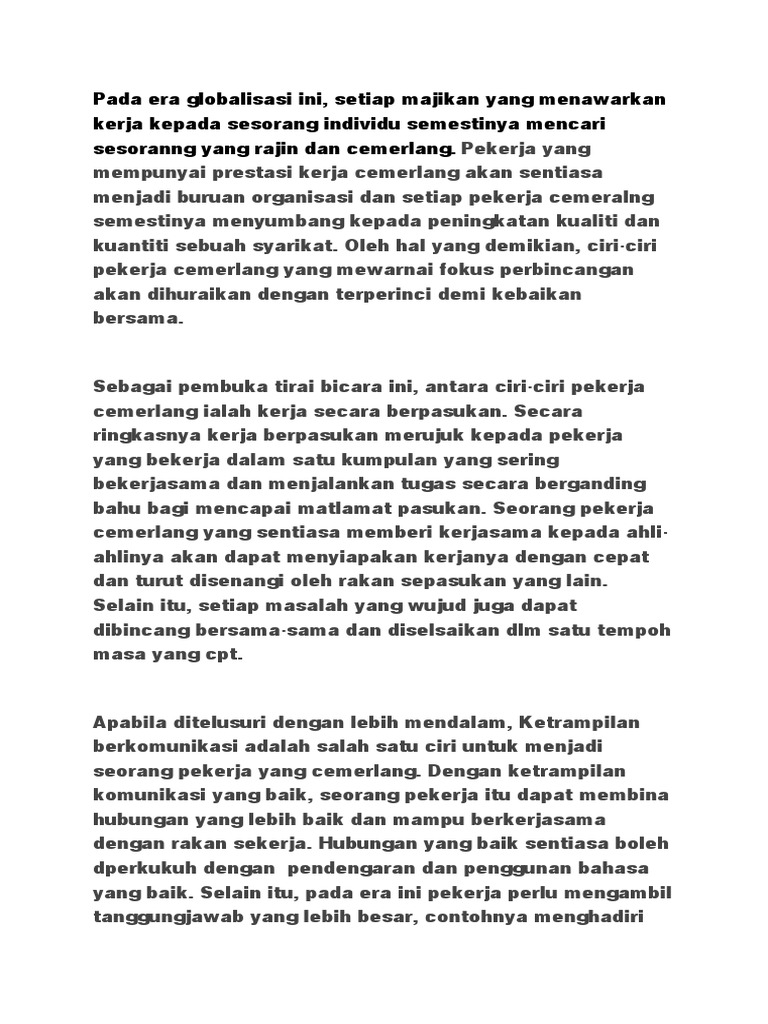 Ciri Ciri Pekerja Cemerlang Docx