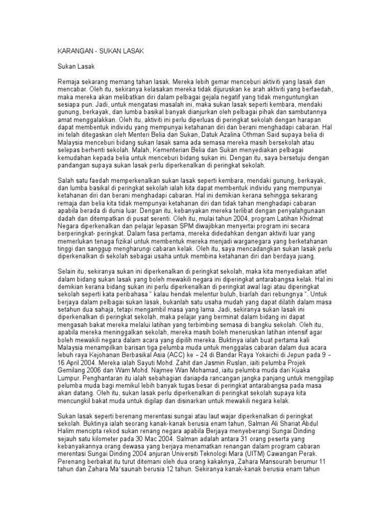 Contoh Karangan Kebaikan Sukan Lasak Karangan Net