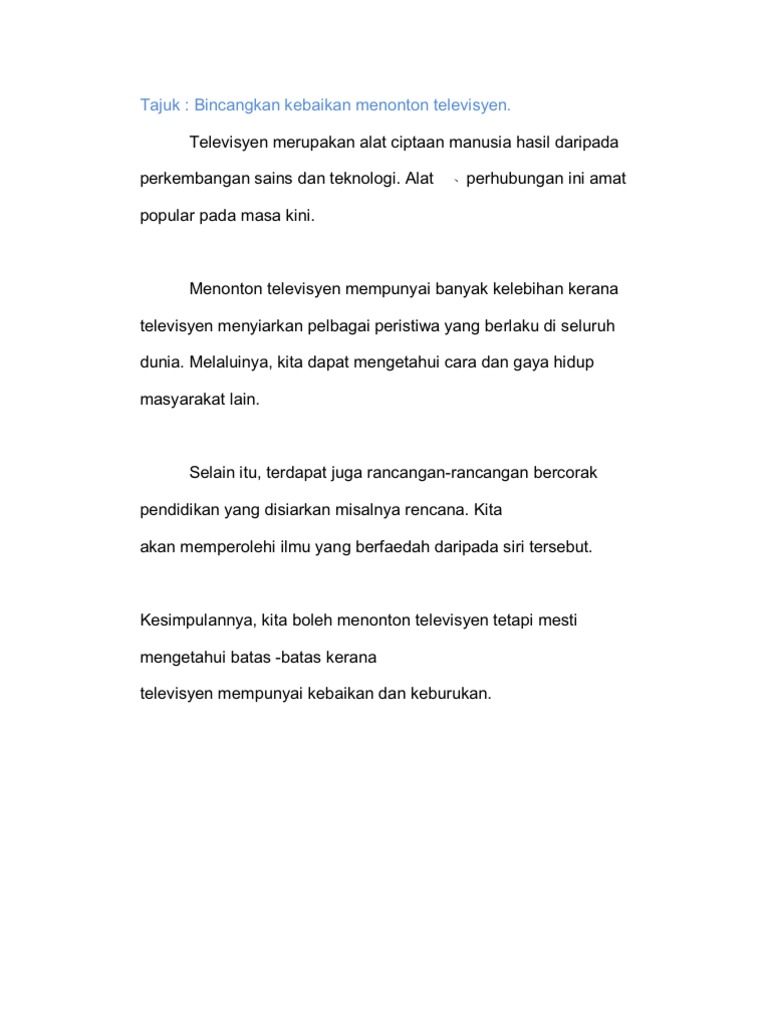 Contoh Contoh Karangan Sekolah Rendah Perbincangan Kebaikan Dan Keburukan Menonton Televisyen