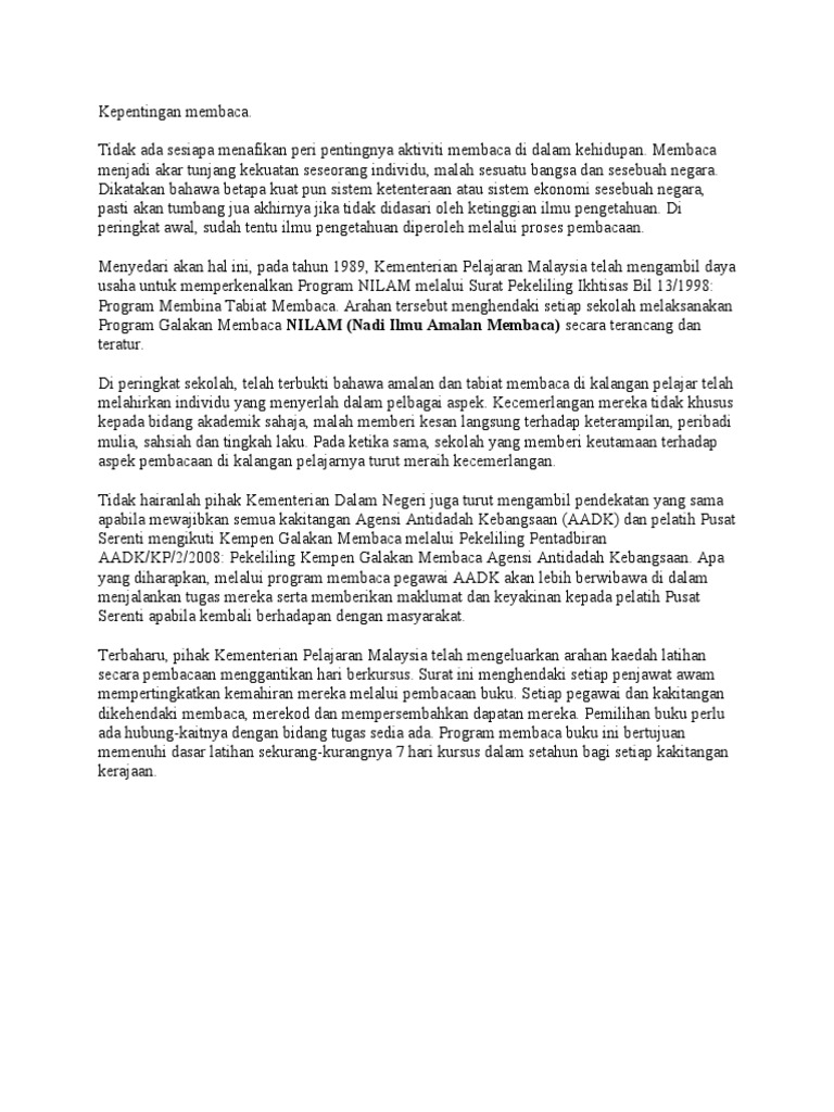 Contoh Contoh Karangan Sekolah Rendah Fakta Kebaikan Membaca Pdf Document