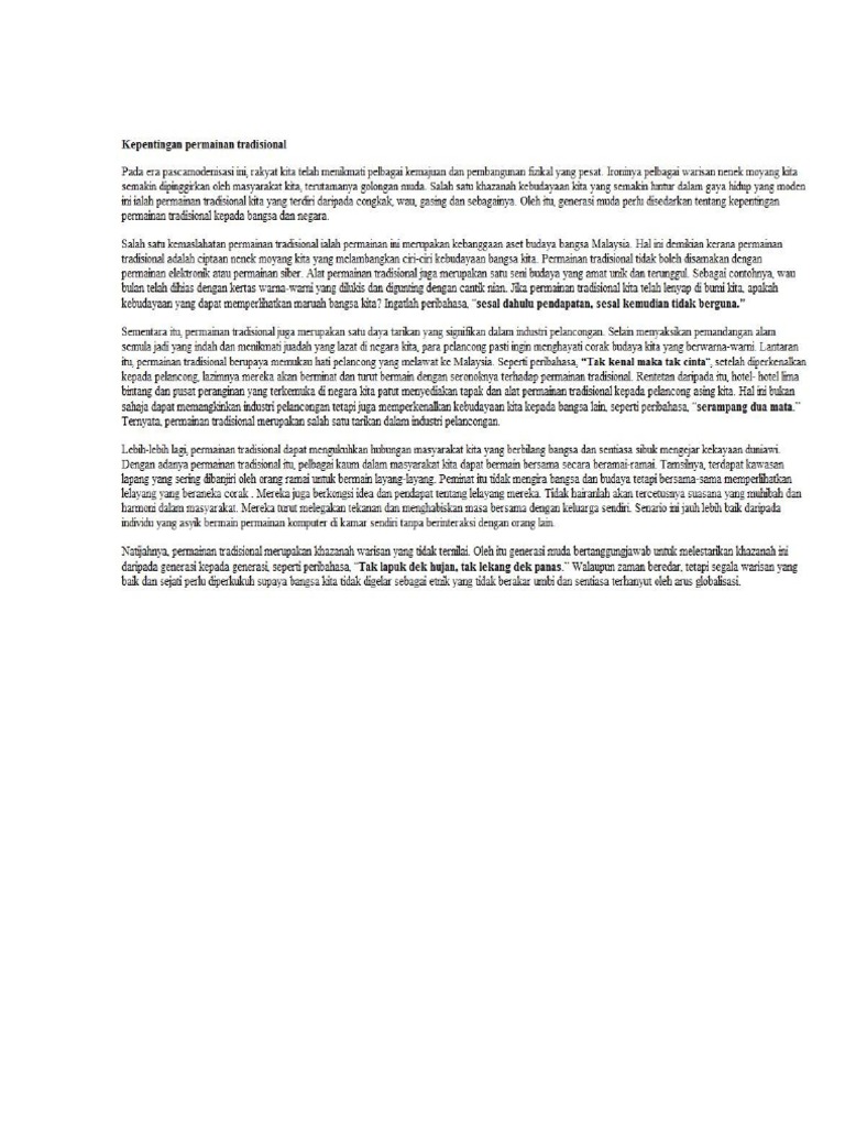 Kepentingan Permainan Tradisional Kepentingan Permainan Tradisional Permainan Tradisional Merupakan Warisan Budaya Masyarakat Melayu Yang Tidak Course Hero