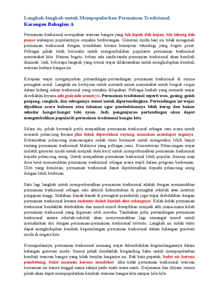 Cikgu Sabar Mohd Karangan Tingkatan 3 Permainan Tradisional