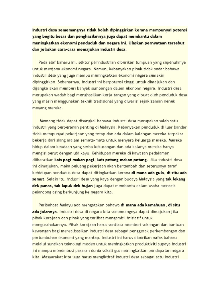 Usaha Usaha Memajukan Industri Desa Contoh Karangan Usaha Usaha Memajukan Industri Desa Pada Masa Ini Industri Desa Semakin Berkembang Di Negara Kita Course Hero