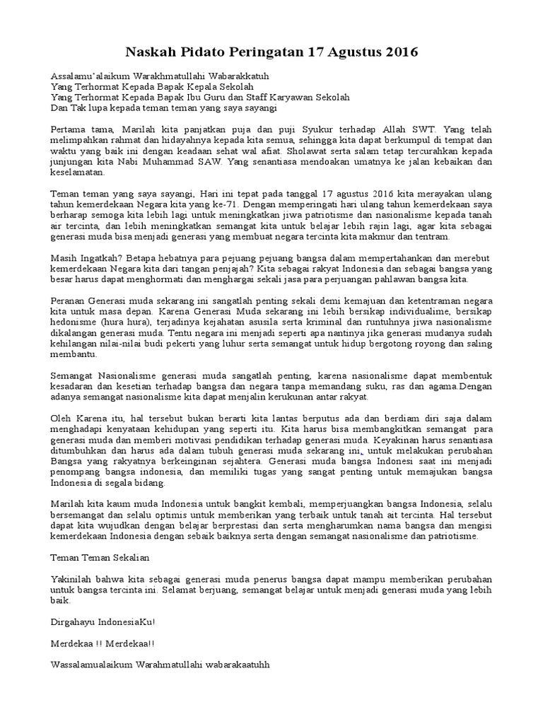 Contoh Pidato Upacara Bendera Senin Doc Document